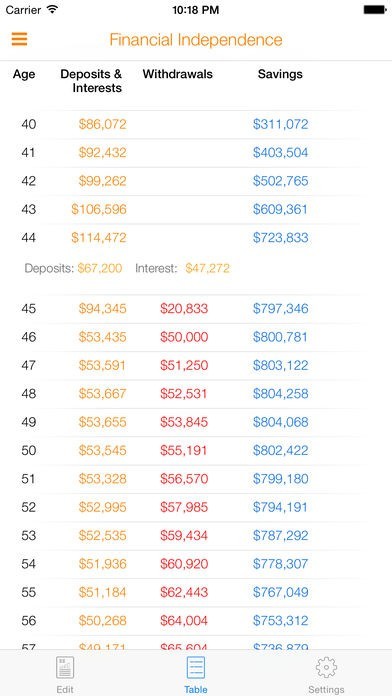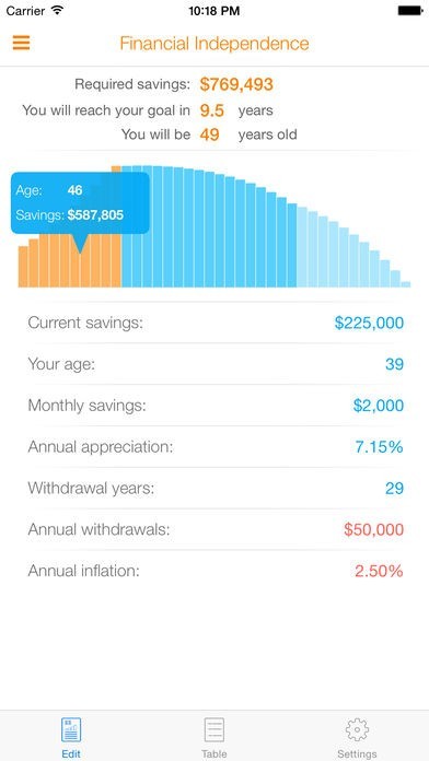 App Storeより引用Visualize your Financial Independence, or as some call it Financial Freedom. How many years will it take you to reach it? How much money will you be able to withdraw annually? Play with all parameters that affect your road to Financial Independence.