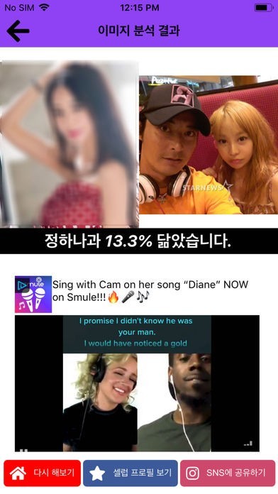 3.닮은 셀럽 찾기 버튼을 눌러서 나와 닮은 연예인을 찾는다