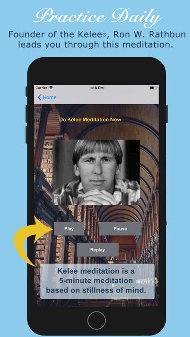 App Storeより引用With the Kelee® meditation app you can do this 5-minute meditation anywhere with just one tap on your iPhone or iPad. Ron W. Rathbun, Founder of Kelee meditation walks you through this practice just as he does individuals from all walks of life.
