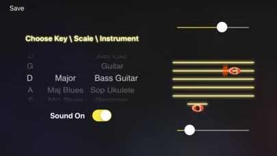 All your scores are saved when exiting the game, so you can track your improvement. Scales include Major, Major Blues, Minor Blues, Chromatic