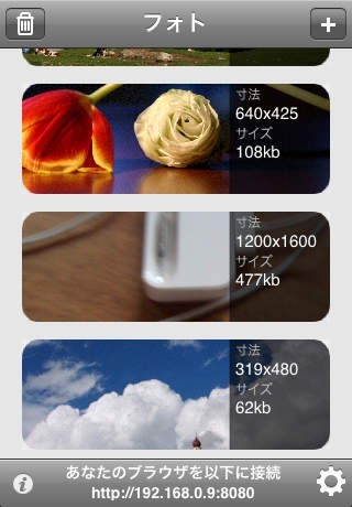あなたのコンピューターのお好みのブラウザを開け、WiFiPhotoに表示されているウェブアドレスに接続してください