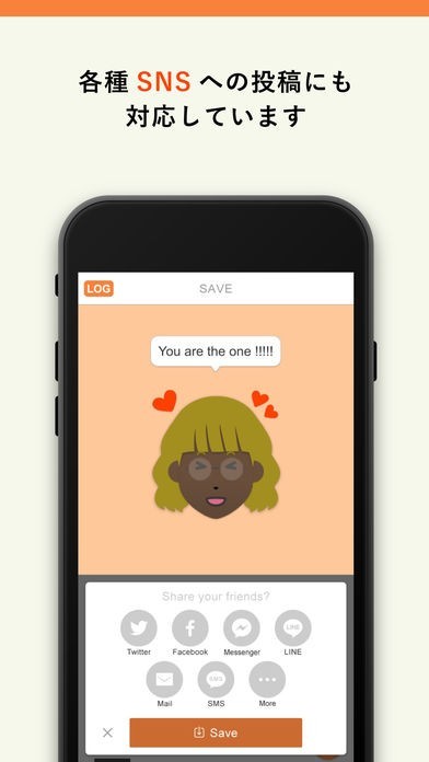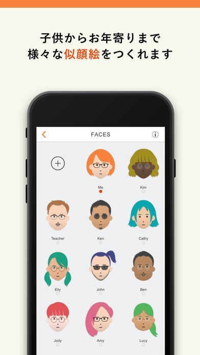 クラスの友達を全員作るのも良し、TVに出てくる有名人を作るも良し。あなたが好きな人たちの似顔絵をコレクションしましょう。作成した似顔絵のデータを、友達のMoooneに送って共有することもできます。
