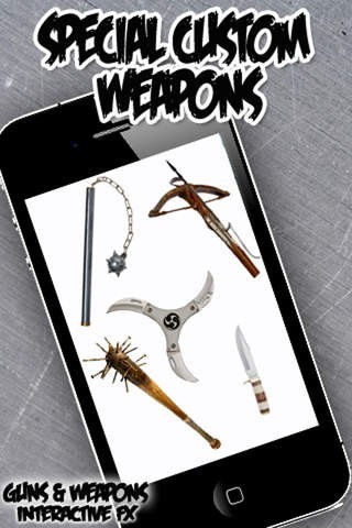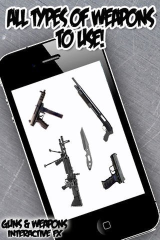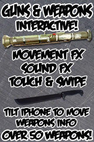 Now you can view and even use all kinds of guns and weapons on your iPhone! Everything from knives, guns, swords, and much more! Scroll through the interactive catalog of various weapons and then select the one you want to play with!
