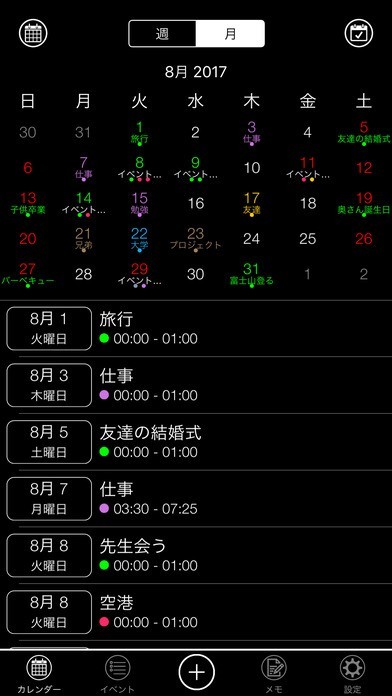 *端末のカレンダーからすべてイベント表示。