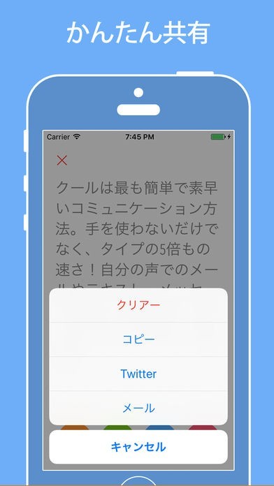 「Just Talk ~ 音声認識」は、音声をテキストに変換してくれる音声入力アプリです。 日本語はもちろんのこと、英語、トルコ語、ギリシャ語など40の言語に対応可能。 アプリに話しかけるだけで瞬時に別言語へ変換できるのが特徴です。 外国語学習や旅行先での翻訳に活躍してくれるでしょう。 ツイート機能も搭載しており、Twitterの友達に変換結果を見せることもできるようになっています。