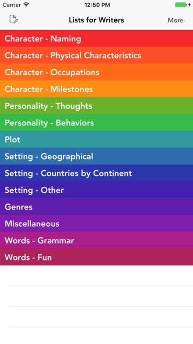 Lists for Writers - ideas for creative writingのスクリーンショット