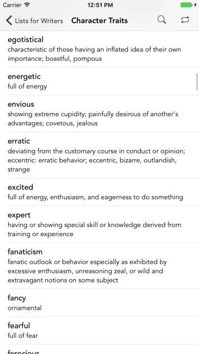 App Storeより引用Lists for Writers is a great addition to any writer’s toolbox. Helpful to both novice and expert writers alike, this app delivers list after list of prompts and ideas for your brainstorming sessions: names, character traits, plot lines, occupations, obsessions, action verbs, and much more! Whether you are working on a creative writing project, a short story, an essay assignment, National Novel Writing Month / NaNoWriMo, or your next fiction book, this app helps get it done.