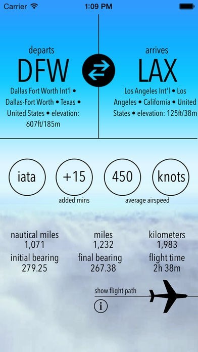 - Insightful map display of the Great Circle travel path for any flight (requires a Wi-Fi or data connection in order to display maps).