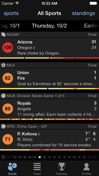 「Thuuz Sports」はスポーツ番組の情報を届けてくれるアプリです。これから始まるライブ中継、過去の番組など、自分が興味ある情報を見ることができます。自分の気に入ったシーンをすぐに再生して楽しめます。気になるニュースが入れば、スマホのアラートで知らせてくれる機能も付いています。確実に情報を知ることができるのも嬉しいポイントです。アプリの内容は濃いもので、ゲームの詳細から選手の詳細まで事細かに知ることができます。