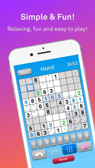 ゲームを途中で停止しても、自動保存機能があるのでいつでも途中から再開することができます。マス目に入れられる数字も表示してくれているので、初めての方でも安心です。
