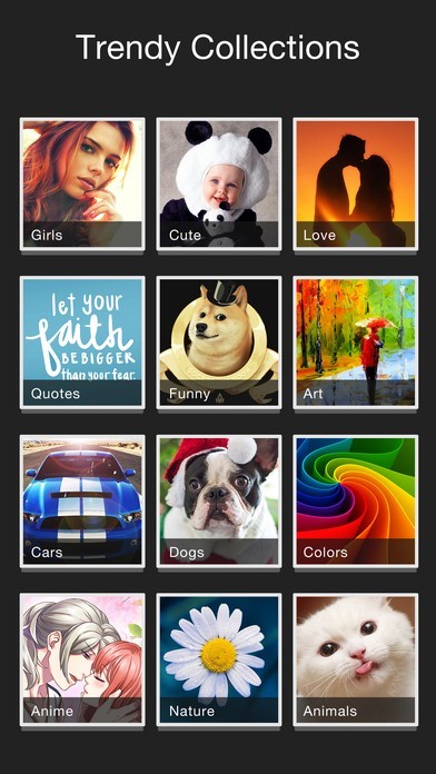 壁紙を1万以上も収録していることから、毎日のように設定変更して新たな雰囲気を味わうことも出来ます。 また扱っている画像には風景のものからアニメのようなものまで多様なので、自分の好みのものを見つける可能性が高いでしょう。 また、「Trendy Collections」を取り揃えておりたくさんのジャンルをタップすることによってそれらを閲覧することも可能です。 他にも、ツイッターやラインなどの背景画像などに使うといった使いみちも考えられます。