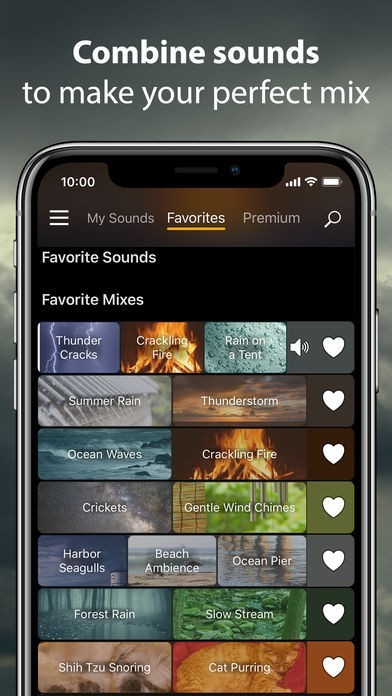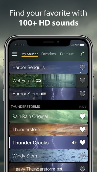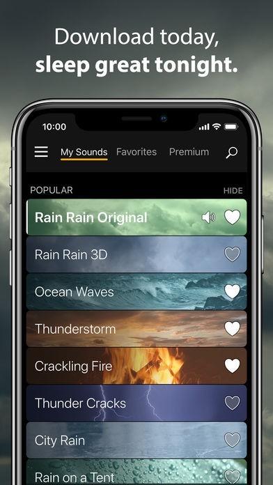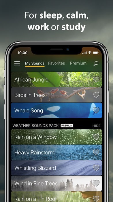 雨、波、風、川の流れなど自然の音やオルゴール音楽など聞きながらリラックスして眠りにつけそうな音楽が揃えられています。それに加えて飛行機、猫の鳴き声、洗濯機や時計の音などいろいろな音も聞く事ができます。お気に入り設定があるので好きな音楽を集め自分のリストを作って楽しめます。