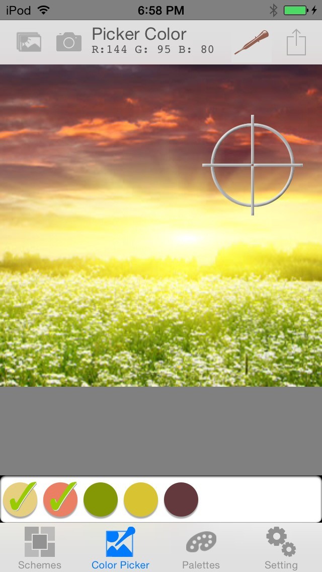 撮影した写真や画像をタップするだけで、その部分の色を取り出せます。一度に複数の色を取り出せますし、保存して使用することが可能なので、気になる色を見つけたらカメラで撮影しましょう。