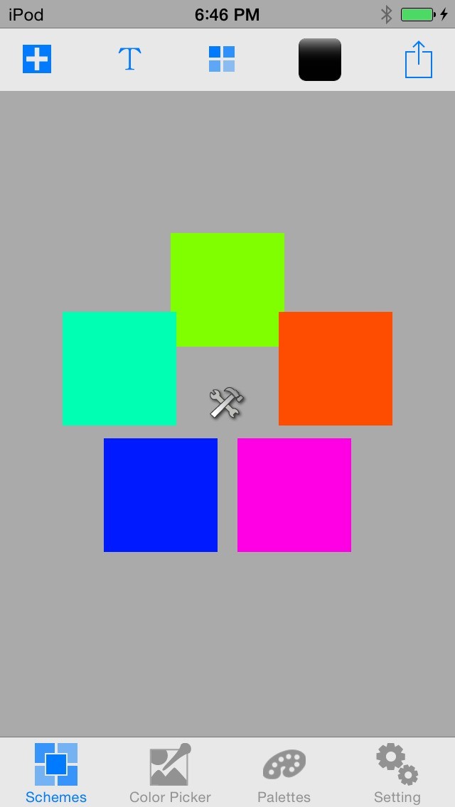 色相環をタップするこで色を取り出せます。複数の色をストックでき、保存することが可能。名前やカラースペースで並べ替えて整理できますし、画像として添付してメールで送信できます。