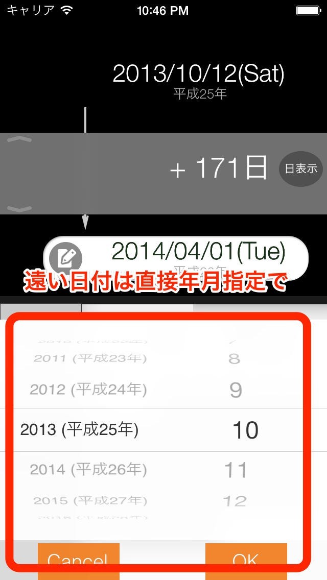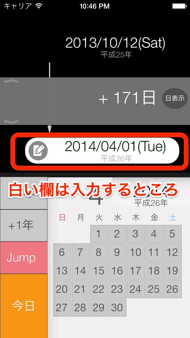数値を入力し、上部の「年」「月」「週」「日」をタップすると、「3年」や「4週」などというように入力されます。(※画面上で「年」「月」「週」「日」を2度使用できません。例えば、「2年4週3年」という入力はできません。)