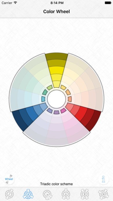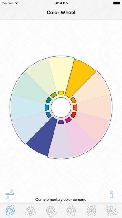 App Storeより引用There is a term “the color wheel” or “the color circle” in the world of art. It is the cross functional helper in choosing the most favorable color combinations. With the aid of it, you can easily find out, which tones will create the most advantageous composition. Using such schemes you can readily combine from 2 to 4 colors in solving a variety of problems connected with pictorial art, photography and even interior decoration.