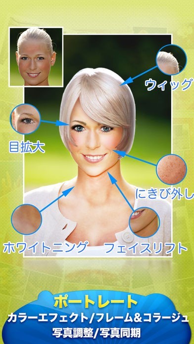 目拡大、ニキビ隠し、フェイスリフト、ウイックなど充実したポートレートです。