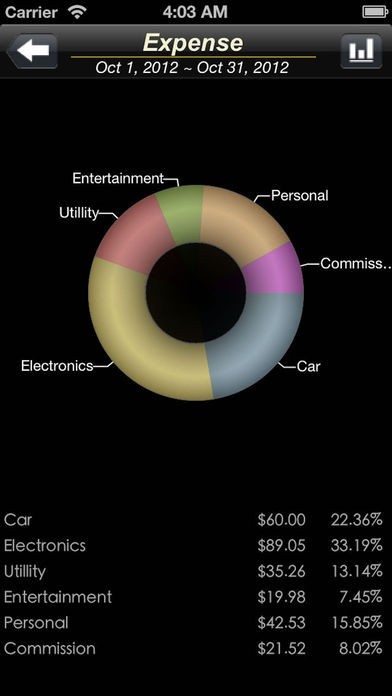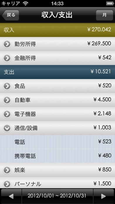 月々の収入と費用、収益赤字のバランスは棒グラフを用いて分かりやすく表示しているので、次回の家計管理のヒントをすぐに見つけることができます。また、データはiCloudを通じてバックアップが可能です。