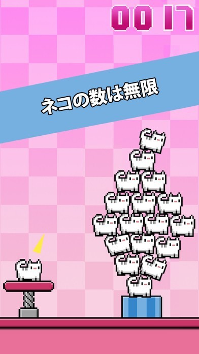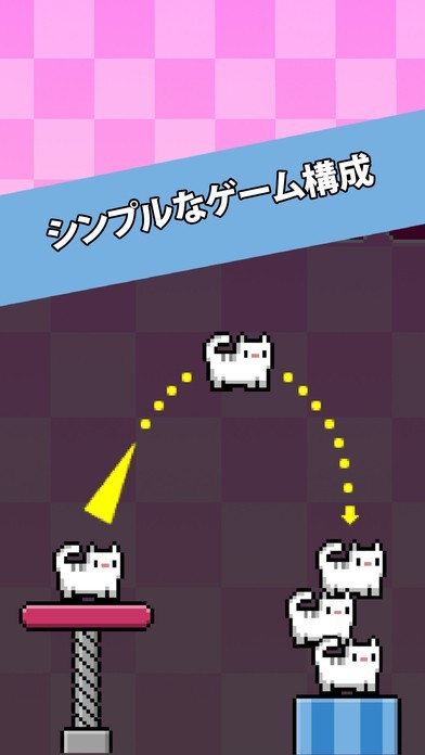 ドラック操作で猫をジャンプさせて巨大タワーを積み上げていく!