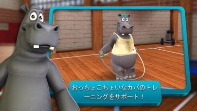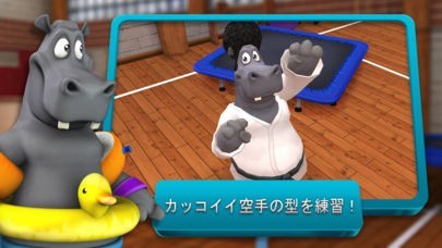 App Storeより引用おっちょこちょいなカバとエクササイズ、楽しいアクティビティを上達させましょう!空手、なわとびにトランポリン運動をはじめ、どなたにもお楽しみいただけるエクササイズの数々!