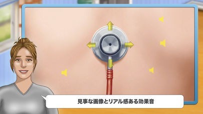 包帯を巻いたり口内を専用の器具で看たりする医者の作業を再現可能です。治癒作業はユーザーがタップしたり指でくるくる動かしたり実際の感覚で遊べるので、働いている医者気分を満喫可能です。