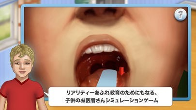病院で働く医者という設定でユーザーは子供たち相手に医療や治癒行動をとれます。そのため本格的な医者設定の体験ができ、患者キャラの症状を伺ってそれに見合う操作をします。