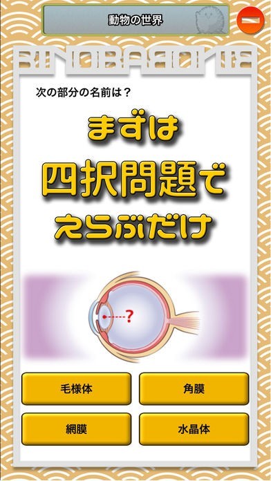 1度目はクイズ感覚で気軽に4択問題を解き、2度目は暗記カードのように確認することで記憶の定着を図ります。