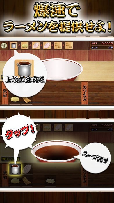 注文通りのラーメンをスピーディーに提供するゲーム