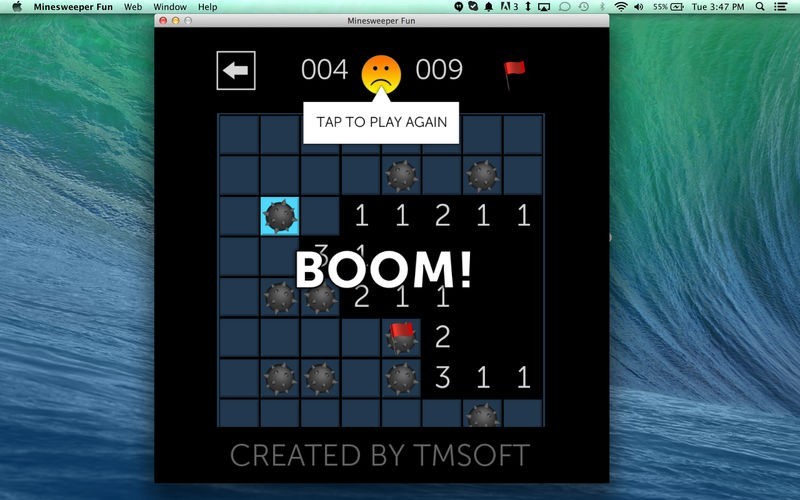 App Storeより引用The object of the game is to clear the board without detonating hidden mines. Minesweeper Fun takes the classic puzzle game into the 21st century. Includes modern themes, intuitive controls, and animations that make this game highly addictive.