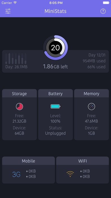 App Storeより引用MiniStats allows you to check your data usage and the status of your phone.