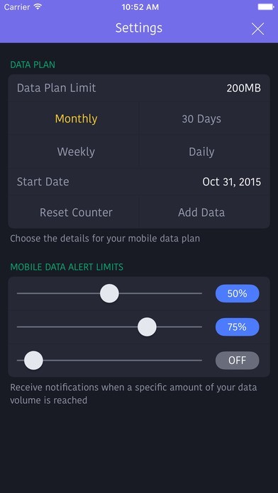 Stop being afraid about your data cap and instantly recognize if you're running out of data with the ring chart.