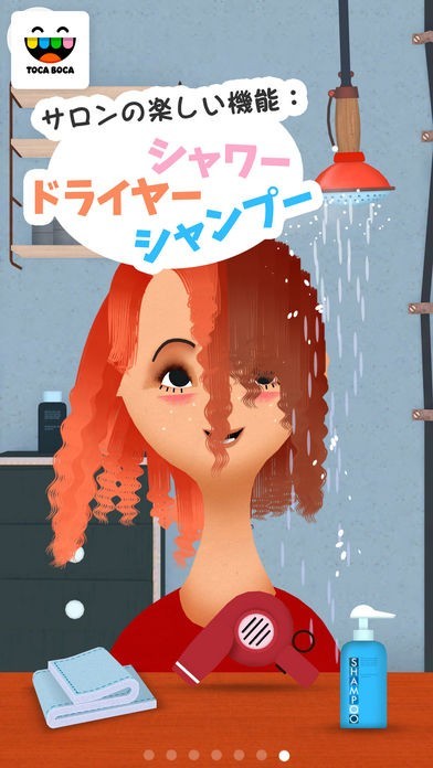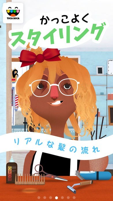 「トッカ・ヘアサロン2 (Toca Hair Salon 2)」は、指先で髪型を作って遊ぶヘアスタイルゲームです。 ヘアサロンを訪れる個性的なキャラクター達の注文に応えて、カットやパーマを行いましょう。 指先で髪をなぞるだけでヘアスタイルの変更が可能。 9種類のヘアカラーやカット用ハサミ、バリカンなど、美容師用のアイテムが勢揃いするのも楽しいポイントです。 シェア機能を搭載しており、とっておきのヘアスタイルを友達に共有して楽しむこともできるようになっています。