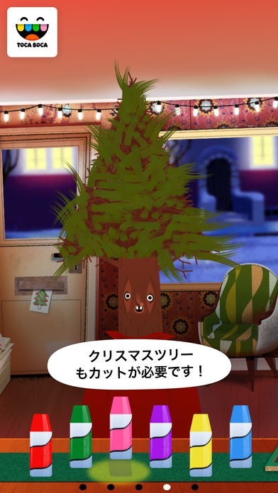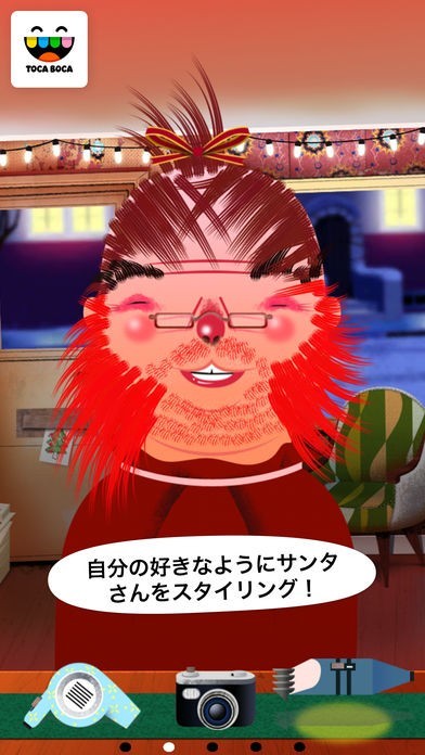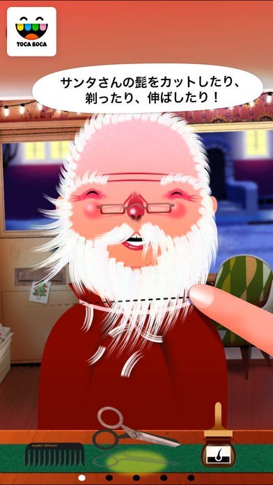 "Toca ヘアサロンのクリスマス"は、人気のゲームTocaヘアサロンシリーズのクリスマスバージョンです。サンタさんの髪やヒゲを綺麗に整えたり、クリスマスツリーのカッティングなどが楽しめる仕様になっています。また、ヘアをスタイリングする多彩な機能が魅力で、カットを始め12種類のカラーリングに8つのアクセサリー機能を搭載しています。ヘアを指でねじるなどの操作にも対応しており、サンタさんやクリスマスツリーをオシャレに変身させるアイテムや機能が充実しています。ユニークなイラストが特徴的なTocaシリーズですが、クリスマスシーズンにはサンタさんのヘアを綺麗にしてみたいと言うお子様に最適です。