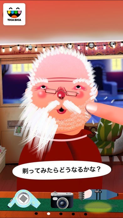 サンタクロースの髪をカットしたりヒゲを剃ったりと美容師気分で自由にスタイリングできる