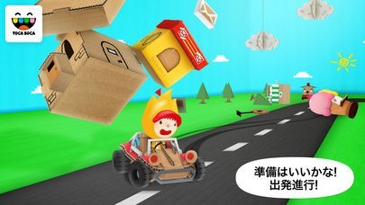 「トッカ・カー」は10歳未満の子供が対象のレースゲームです。このゲームにゴールはありません。プレイヤーは好きな場所を走って、水たまりを駆け抜けたり木にぶつかったりするゲームです。全部が段ボールでできているので、プレイヤーがケガをすることは一切ありません。