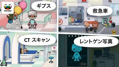 5つのフロアを用意している「Toca Life: Hospital」は病院の施設を再現しているスマホアプリで、小さなお子様の知育ツールとして利用出来る特長があります。松葉づえやベッド等の様々なアイテムに触れることが可能ですし、レントゲン機器を活用して患者さんの診察を行えるのが機能のメリットでしょう。