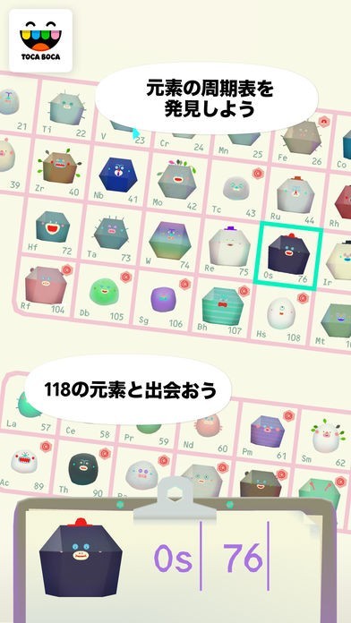 様々な実験を繰り返すことで元素を模したキャラクターは増えていきます。大人の化学の知識を活かしながら子供と一緒に遊んでみましょう。キャラクター一覧表にはヒントも用意されているのでそちらも読みながら挑戦してみてください。