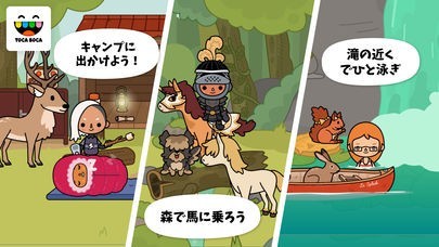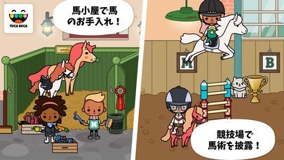 仲間や動物、乗り物などのポップなキャラクターと一緒に、清々しい自然や面白い施設がいっぱいの世界で楽しい生活を体験できます。馬でいろいろな場所に出かけたり、キャンプやスイミングなどをして遊びましょう。