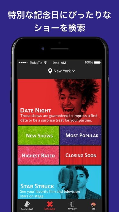 「TodayTix - ラストミニッツのブロードウェイ等の格安チケット購入アプリ」スペック・仕様