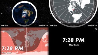 地図上で目的地を指定すれば、都市名、日付と時刻、緯度と経度が表示されます。さらにそこから別の都市を指定して、現在時刻の表示、二つの地点間の時差や距離の計算もできます。