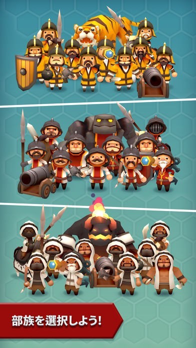App Storeより引用部族を選んで王国をつくりましょう。世界を探検して技術を学び、領土を拡張してください。剣士、騎士、大砲、戦闘艦など、個性溢れるユニットをつくり、バトルに備えましょう!