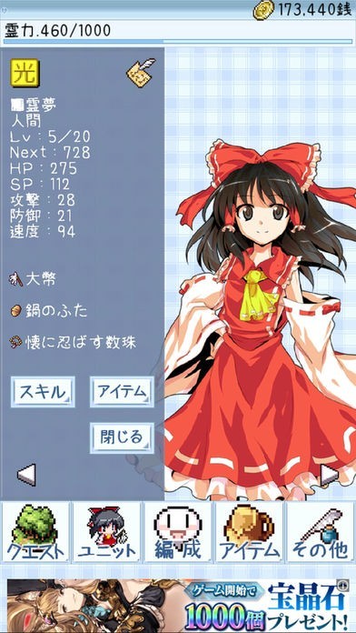 「東方異想穴」は幻想郷の住人を模した式神「コダマ」をひたすら集めて育て続けるRPGゲームアプリです。4段階のモードにより、初めての人からやりこみの人まで色々楽しめるようになっています。式神のスキルは銭を使用して習得することができ、エッグを使用して習得したスキルをレベルを上げて育てていきましょう。スキルレベルが上がるとスキルの威力が強化されます。すべての東方キャラがそろうので、膨大な数の式神を自分の好みに育ててルナティック制覇を目指しましょう。