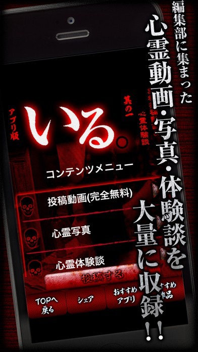 心霊投稿動画や心霊写真、心霊体験談を見たいという方にピッタリなアプリ!