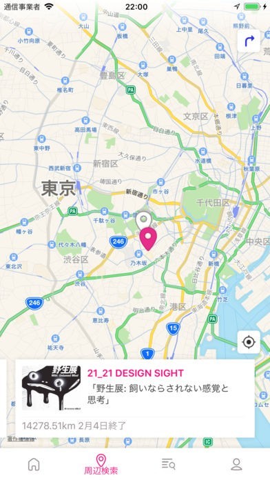 最寄りの東京アートビートのイベントを地図付きで検索可能