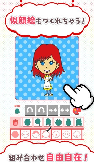 似顔絵作成機能も充実。顔パーツを組み合わせて自分そっくりの似顔絵を作ろう!