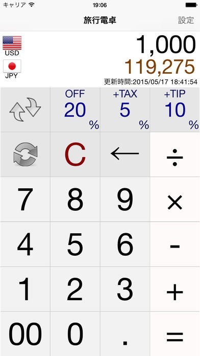 また、海外旅行に付き物のチップや税率や割引も適正価格をワンタッチで算出することが出来ます。