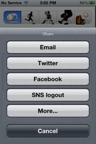 計測したタイムをすぐに呟けるSNSを使った共有機能も用意されています。TwitterやFacebookなどの他サービスと連動して仲間たちとの情報共有に役立ててみましょう。