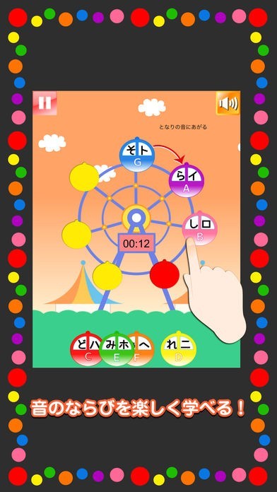 このアプリは観覧車のイラストにドレミの音階を合わせていくゲームです。タイムアタックでタイムを競い合う機能もあるのでやっているうちに記憶への定着もしっかりとしていきます。