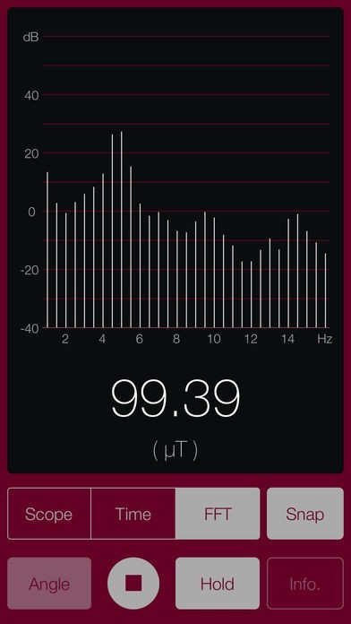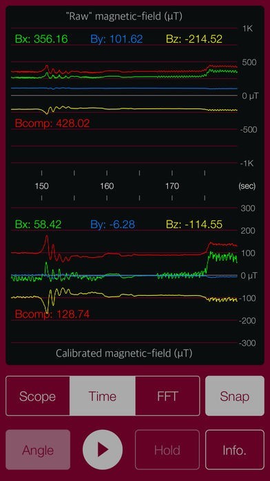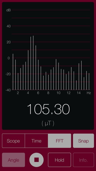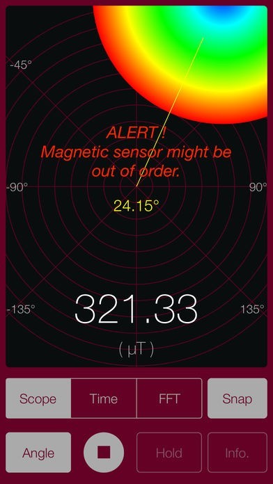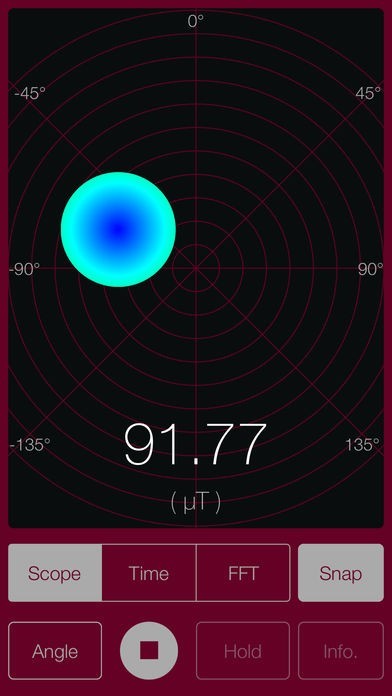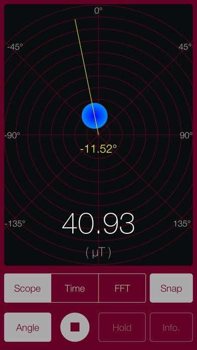 スマホに内蔵されている磁気センサーを利用して、スマホ周辺の磁界を調査できます。ちょっとした磁界の変化にも敏感に反応します。磁界の大きさのほかに磁界の傾きもわかります。