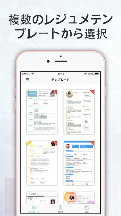 - テンプレートを自由に切り替え、よりよいレジュメを作成